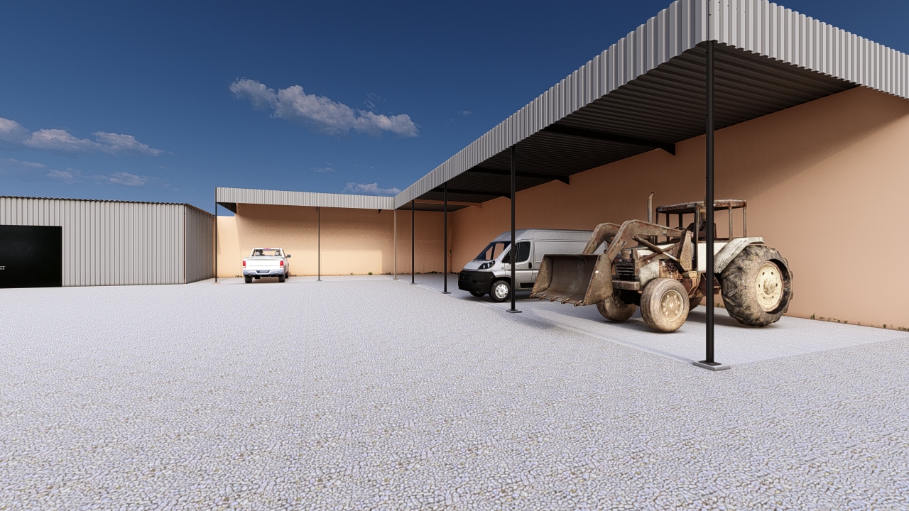 Par ses dimensions généreuses, ce corps de bâtiment se caractérise par plusieurs entités attenantes. Des locaux ouverts et fermés destinés au stockage agroalimentaire, une loge gardien ainsi qu’une pièce à vivre.