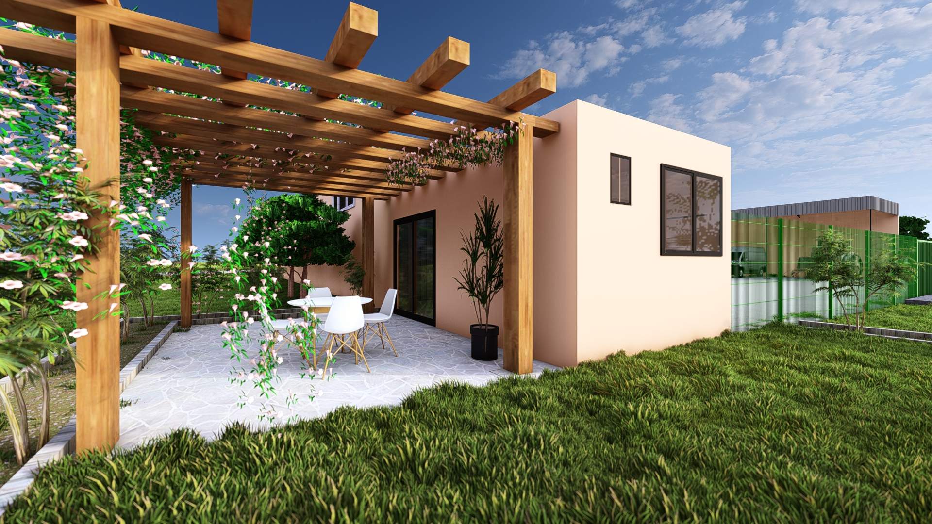 Celle-ci verra sa façade Sud s’ouvrir sur une terrasse couverte par une pergola en bois offrant aux futurs usagers un espace extérieur protégé du vent et du soleil.