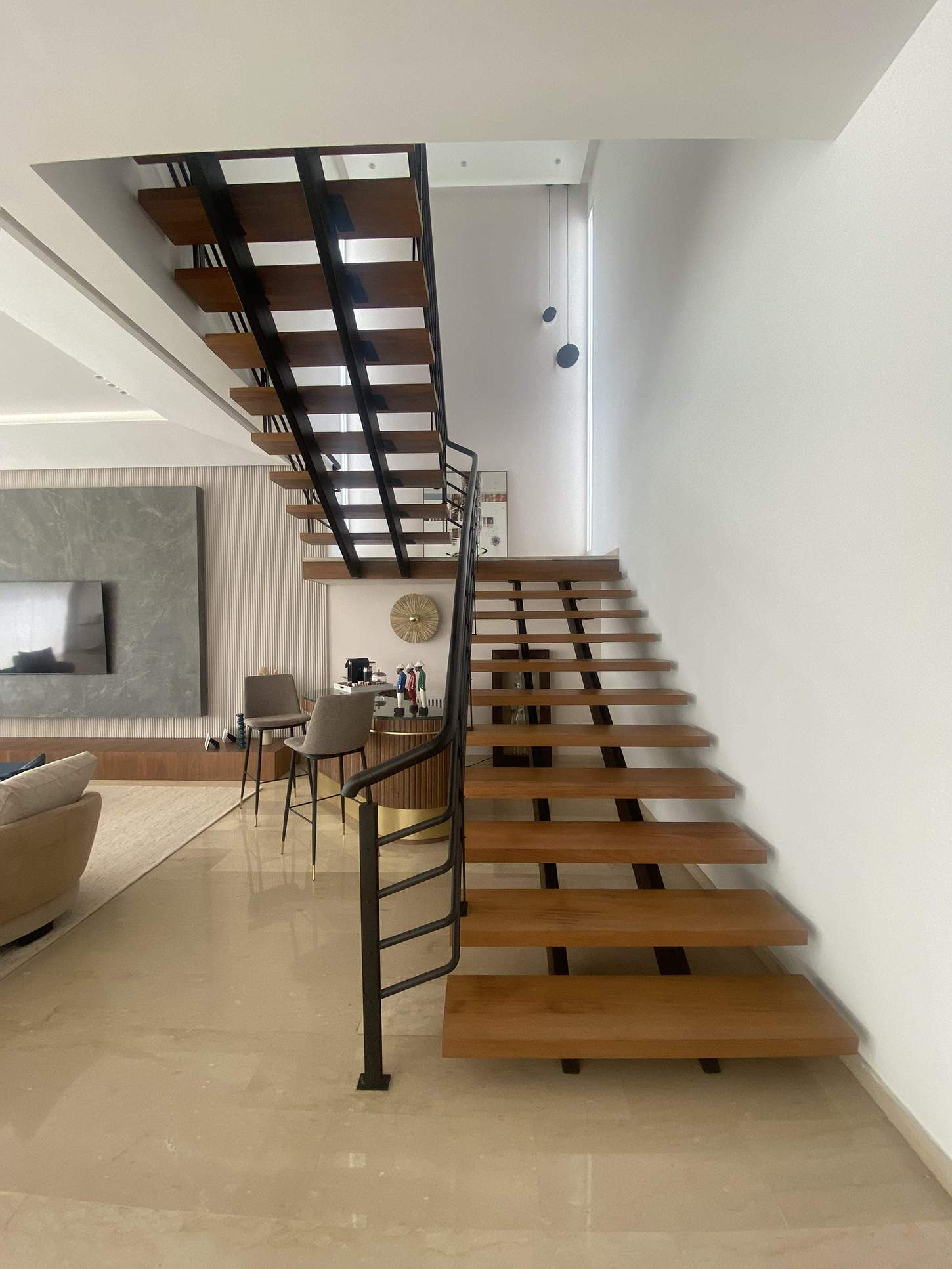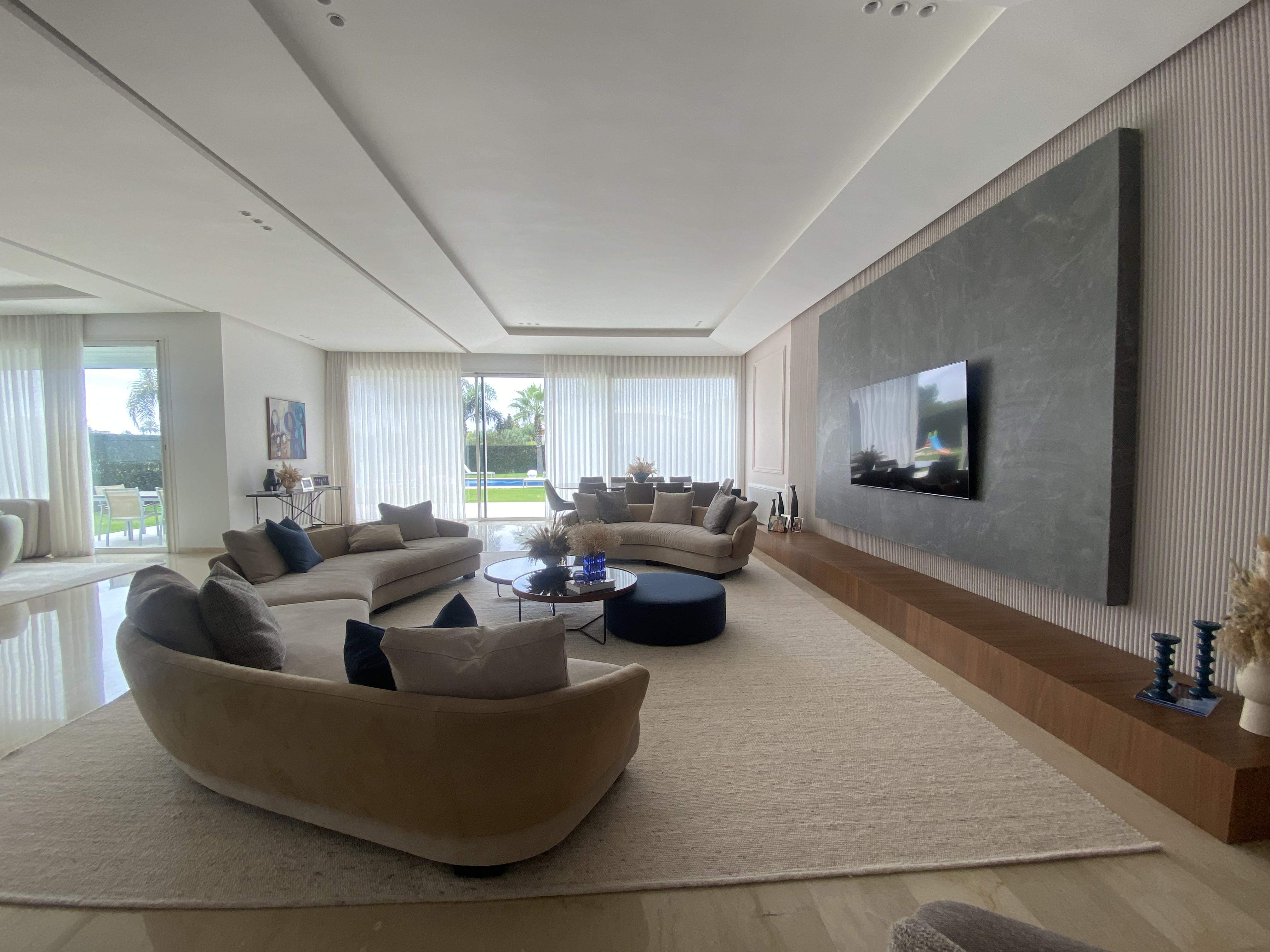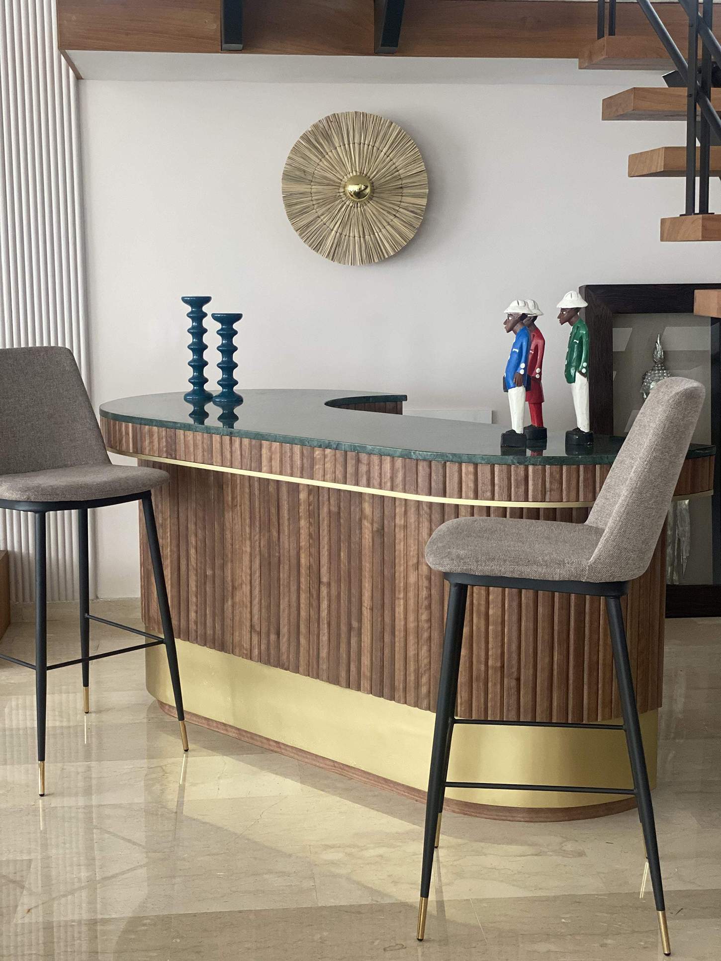Une réflexion particulière a été menée au sein des différents espaces de la maison avec un jeu de matériaux, de couleurs, de matières et de lumière notamment à travers l’habillage mural, les escaliers, le mobilier et les éléments de décoration. Le tour formant ainsi un lieu lumineux, accueillant et apaisant.